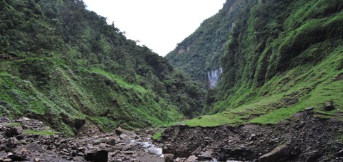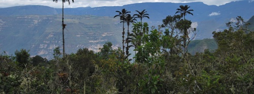 Después de tres horas de camino se queda a unos 200 metros de distancia y desnivel de la cabecera del salto superior. Hay un matorral espeso difícil de atravesar sin machete. Explora todo el cañón de Gocta durante 1km. Y no encuentra entrada fácil, ni ningún tramo de interés como barranco.