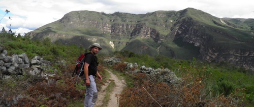 Antonio sale bien pronto con la intención de llegar a la cabecera del salto superior de Gocta y buscar una entrada fácil.