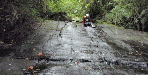 A partir de aquí el barranco pierde interés, muchos destrepes, bastante resbaladizo y vegetación selvática hasta llegar al puente palomita, en el camino turistico de Gocta a Cocachimba. Donde llegamos sobre las 16:00. Dejamos los petates junto a la Cabanita de Golondrina para que los recojan las mulas al dia siguiente.