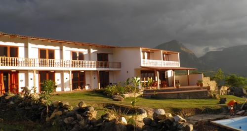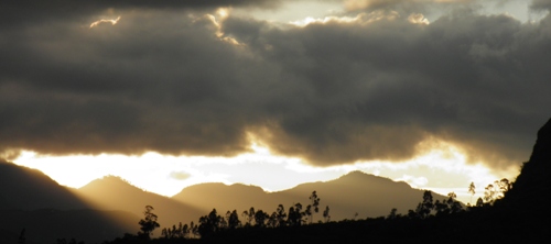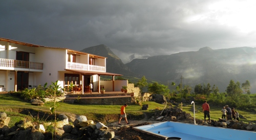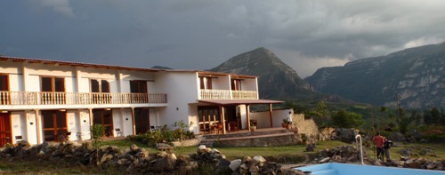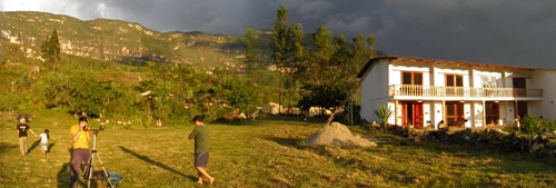 Por la tarde, se improvisa un partido de voley que concluye rápidamente con la descarga de una tormenta. Pero se aprovecha para hacer una sesión de fotos de la misma y del atardecer. Las vistas desde el Lodge de Cocachimba de nuestro amigo Lluis Dalmau (catalán de Valls – Tarragona), son espectaculares, tanto de Gocta como del atardecer.