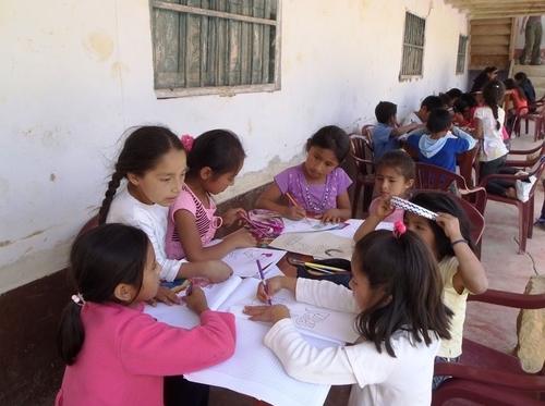 En el pueblo los maestros de la escuela hacen huelga, siguiendo nuestros principios de colaboración, montamos el colegio en el patio que hay debajo de nuestro campamento base, Thais se encarga de darles tareas a los niños además de darles clase de inglés, los niños disfrutan mucho de este día además de no haber perdido un día de clase. Un aplauso para Thais que se lo ha currado mucho.
