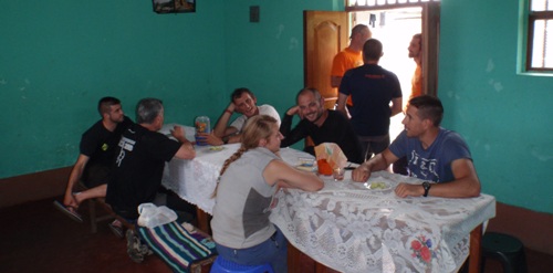 Jose, Piru y Juan bajan por la mañana a Pedro Ruiz, vuelven con el taladro de gasolina arreglado, se había roto en el transporte de avión. Estas gentes son increíbles… han hecho una soldadura en aluminio sin apenas medios. Y además, en 1h. nos han hecho varios protectores de cuerdas con pvc, a un 10% del precio que valen en Europa.