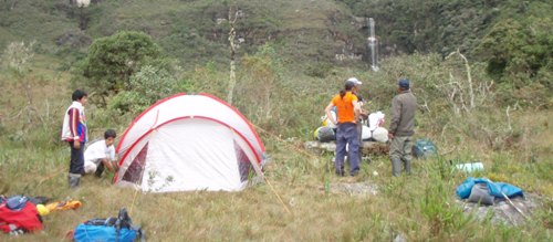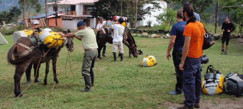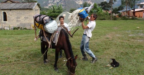 Nitu se ha encargado de gestionar tres caballos para que suban los petates y el equipo de acampada. Los arrieros lo dejarán en el pajonal y montaran una carpa que será nuestro campamento avanzado para atacar la parte superior de varios barrancos.