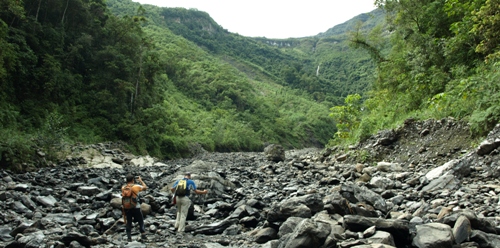 Por otro lado salen Antonio, Ceci y Josema, que van a explorar la salida del Golondrina Inferior, y después acercarse a la base del primer salto de Gocta, para intentar conectar los caminos de San Pablo y Shungaya.