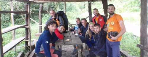 La equipación no es fácil, mucha vegetación y difíciles recuperaciones hasta llegar a hacer un flanqueo y buscar la placa que es la mejor línea que hemos estudiado desde nuestra llegada. Una vez en la línea hay problemas de recuperación con una cuerda y se acaba cortando para aprovechar el máximo de la misma. También hay problemas con el taladro que va instalando, se para, después de unos momentos de incertidumbre y desaliento general, la máquina vuelve a funcionar.