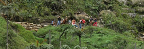 Ataque a Gocta inferior, el equipo que ha dormido en St. Pablo sale a las 06:30, el porteo se hace con dos caballos.