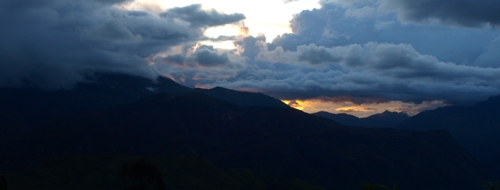 Los tres que han acabado destrozados y agotados, abandonan los petates en la cabañita del golondrina. Recorren el camino de Gocta por última vez a la luz de sus frontales. Por el camino comprueban las crecidas al cruzar los puentes de Palomita y Golondrina, la elección de abandonar ha sido la correcta.