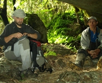 Por otro lado, Piru, Ceci y Charly que estaban en San Carlos, salieron por la mañana primero hacia la cueva de Uchamorro, llegan en tres horas y cuarto, y comprueban que no tiene ningún interés. De aquí van a la cueva de Jatumpampa, acompañados por el guía Francisco Guivin, exploran la cavidad durante tres horas intentando buscar la continuidad en un derrumbe.